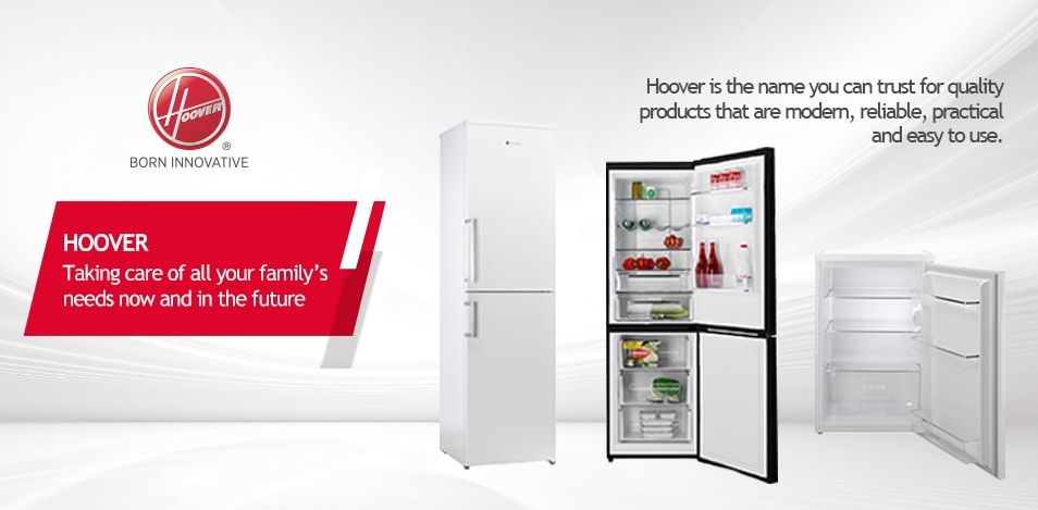 Hoover HOCH1T518EWHK 1.8m x 55cm, frost free, white, 3 Shelves, silver trims, 4 freezer drawers